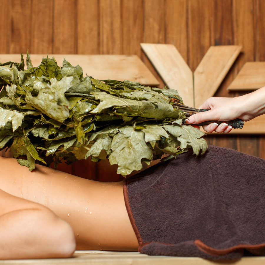 With skin nicely warmed, so begins a complex dance of intermingling strokes and compression techniques to infuse the body with healing pressure and heat. The Venik is gently pressed against your body and brushed from side to side from your neck to toes and back again. Next, the Venik is shaken high in the air to gather more heat and then firmly pressed against your waist, shoulders, feet or knees for a few seconds, compressing heat into the joints. Finally, as if in a gentle breeze, the soft leaves lightly slide and strike the skin.